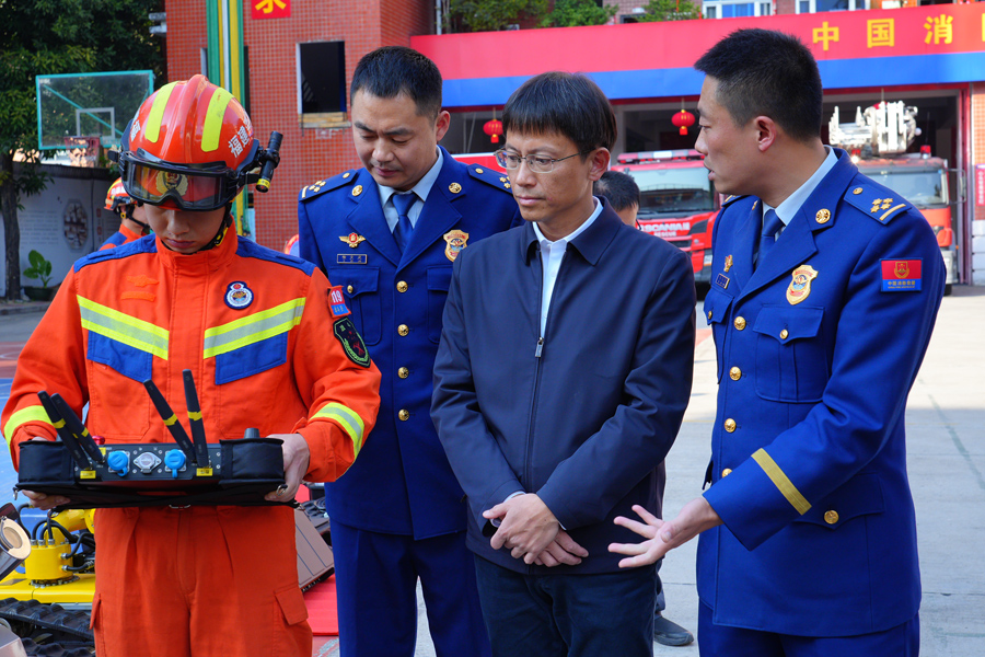 慰问团一行还观摩了消防机器人操作演示,详细了解消防车辆和装备配备、装备性能参数和用途、物资储备和人员力量等情况。县领导王洪龙、余庆新等领导参加慰问。